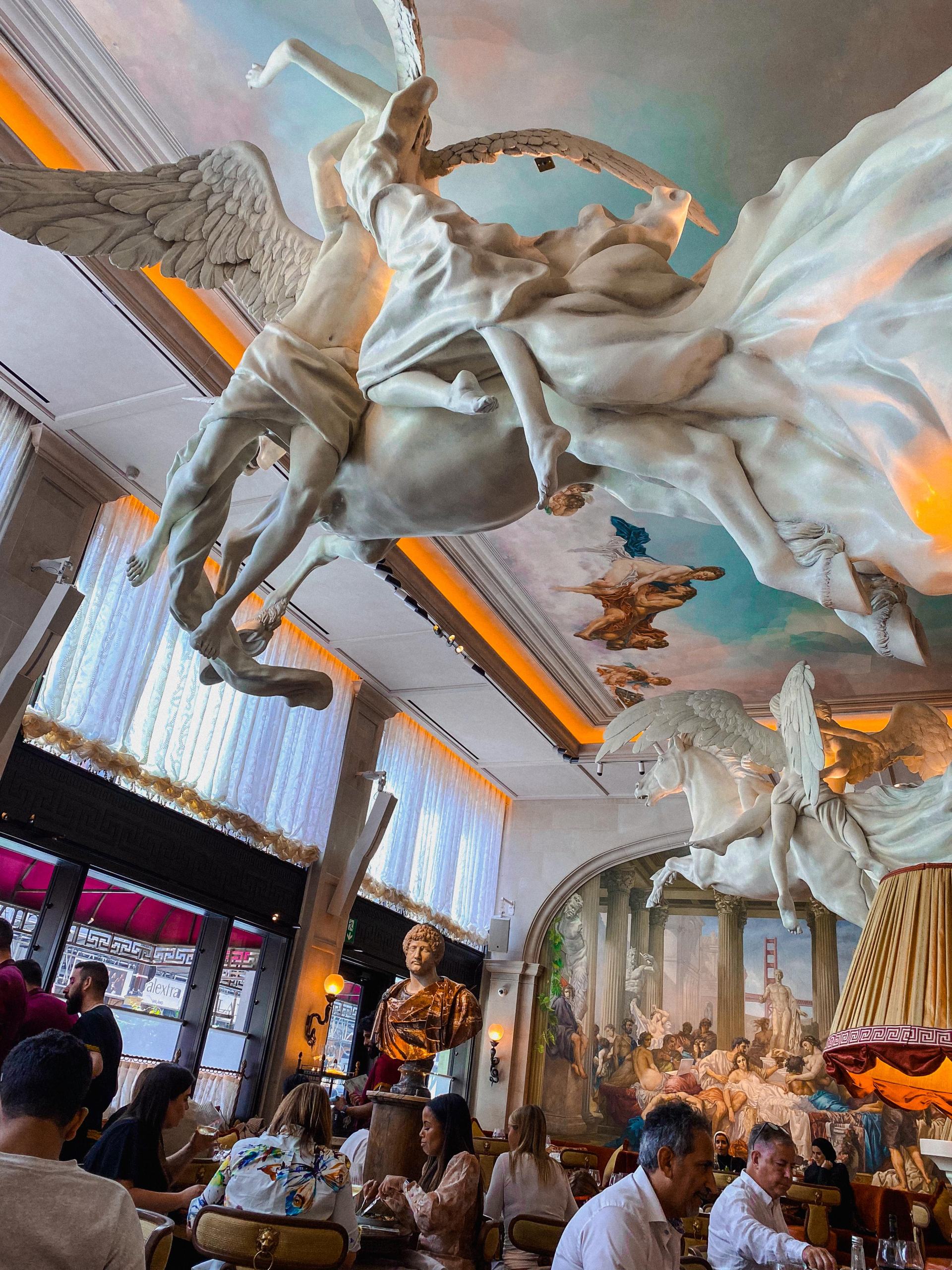 Let’s be frank, we’re all going to Bacchanalia to experience the interior. From its eye-catching color palette of gold and burgundy to the uniformed doormen and Medusa flying high above your head as you tuck into your meal, Bacchanalia is every inch the visual treat. Truthfully, the food is almost secondary. Yet, Bacchanalia offers a perfectly servicable menu, including plenty of options when it comes to caviar, salads, pasta and its scrumputous ‘Food of the Gods’ offering.