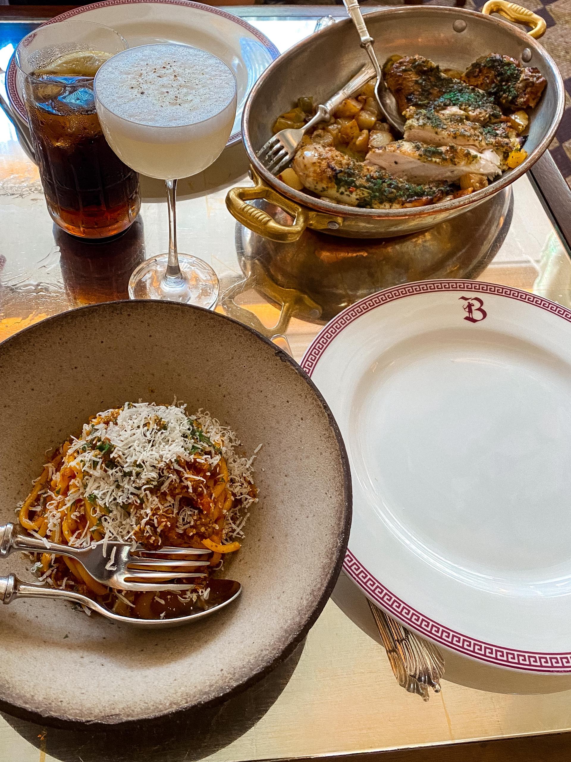 We opted to keep it simple with rigatoni beef ragù with parmesan and grilled chicken with padron peppers, roasted potatoes and chicken jus as mains. While the rigatoni ragù was nothing to write home about, the grilled chicken was divine. Perfectly cooked and a really great balance of peppers and potatoes. Food is also served with all the theatrical flair and flames, which was a fun addition to the experience.